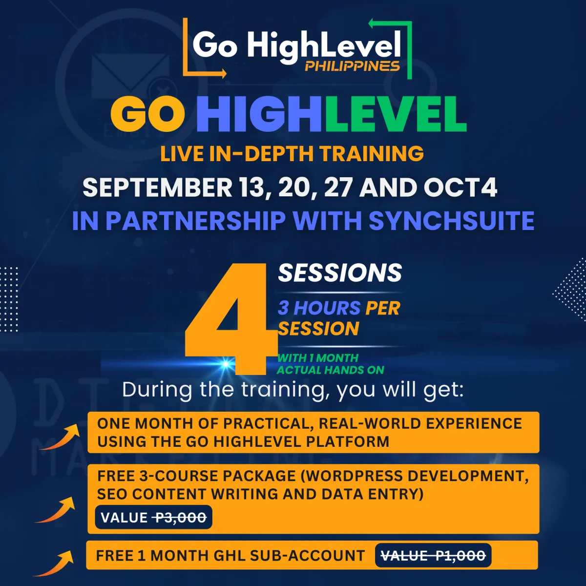 At Go HighLevel Philippines, our training is designed for advanced or specialist-level skills, not just basic knowledge. We provide in-depth guidance on best practices, tips, techniques, and strategies, and detailed explanations of why certain approaches are used, including pros and cons.